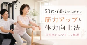 50代・60代になると、階段がつらい、疲れやすい、立ち上がりにくいなど、体力や筋力の低下を感じる方が増えてきます。この記事では、女性が無理なく始められる筋力アップと体力向上の考え方を、やさしく分かりやすく解説します。